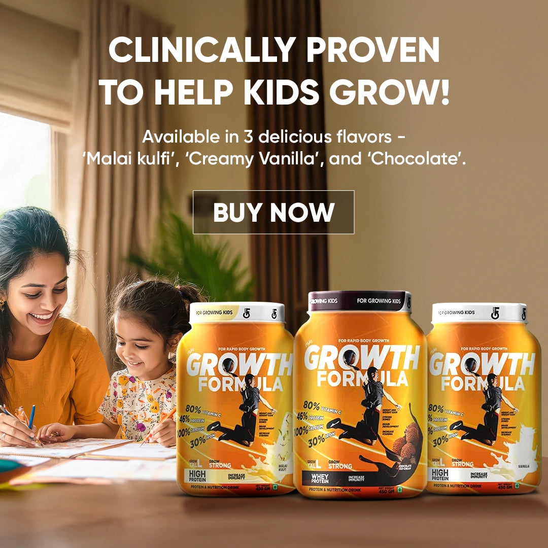Take the stress out of wondering about your child’s growth! Growth Formula offers complete, balanced nutrition with a kid-approved taste, making it the perfect protein powder for kids in India. It is carefully formulated to support height, strength, and overall development, this protein powder for kids ensures that they get the right amount of nutrients to grow taller, stronger, and healthier—all while enjoying a delicious drink they’ll love!