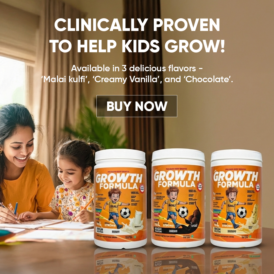 Take the stress out of wondering about your child’s growth! Growth Formula offers complete, balanced nutrition with a kid-approved taste, making it the perfect protein powder for kids in India. It is carefully formulated to support height, strength, and overall development, this protein powder for kids ensures that they get the right amount of nutrients to grow taller, stronger, and healthier—all while enjoying a delicious drink they’ll love!