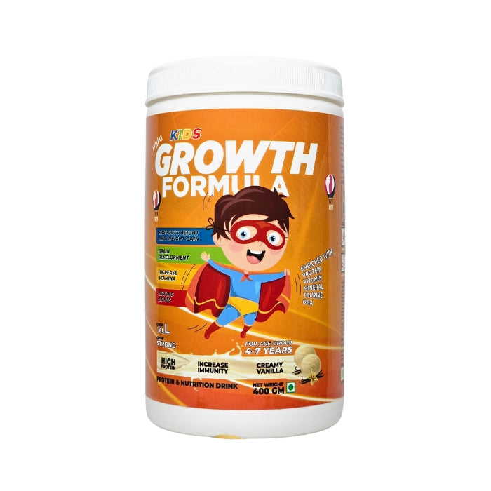 Mikis Growth Formula is a healthy formula for kids of 4 to 7 years old in delicious flavours. This nutritional powder contains essential vitamins, and minerals to help kids to grow while enjoying a delicious taste. This whey protein powder is one of the best vegetarian protein sources for young kids and it is easy to digest. It is free of soy protein, preservatives, colours, gluten, and malt. Growth Formula also supports overall health and aids digestion, ensuring young kids receive complete nutrition while enjoying a tasty and healthy drink.